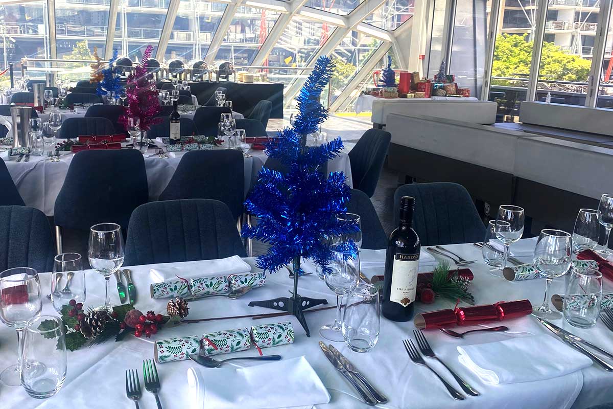 The Clearview Christmas Party Lunch Cruise departs from King Street Wharf, Darling Harbour, typically around 12:30pm. Please arrive at least 15 minutes early for boarding.