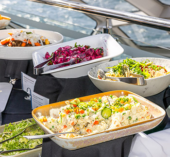 With this specially curated package for groups of 6 or more, you’ll enjoy a multi-cuisine buffet with salads, main courses and dessert. And we’ve got the holiday essentials covered! From Xmas bonbons to a selection of beers, wines, soft drinks and juices — enjoy them during your cruise!