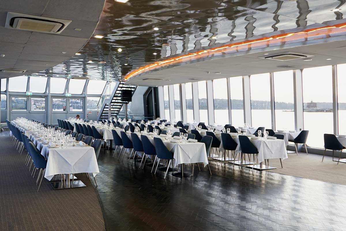 Boarding from King Street Wharf, your experience starts off with a welcome mimosa cocktail! You are shown to your reserved seats in a dining space with floor-to-ceiling windows offering 360° views of Sydney’s most iconic harbour sights. The multi-course buffet features an abundant spread of fresh salads, hot dishes and a dessert to finish – a restaurant-quality lunch served aboard a luxury cruising vessel.
