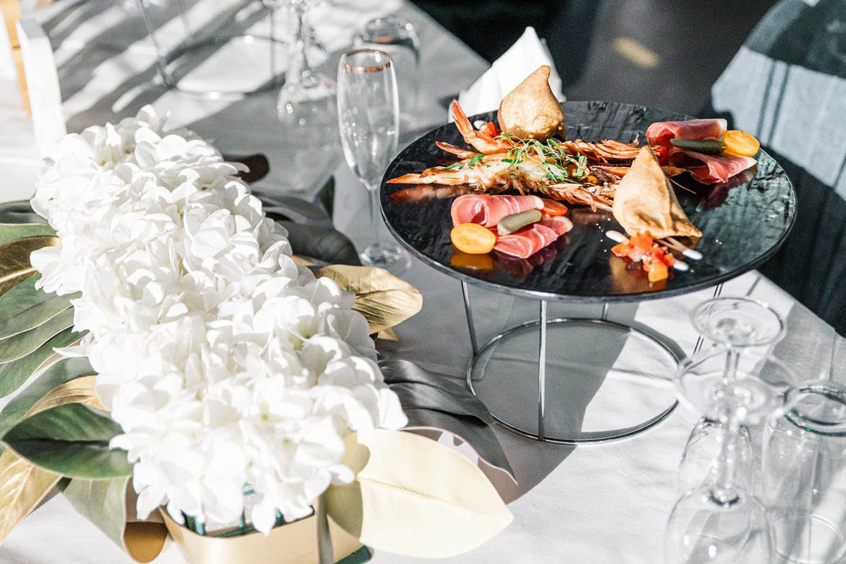 We have our own onboard galley and executive chef, so you won’t need an external caterer.